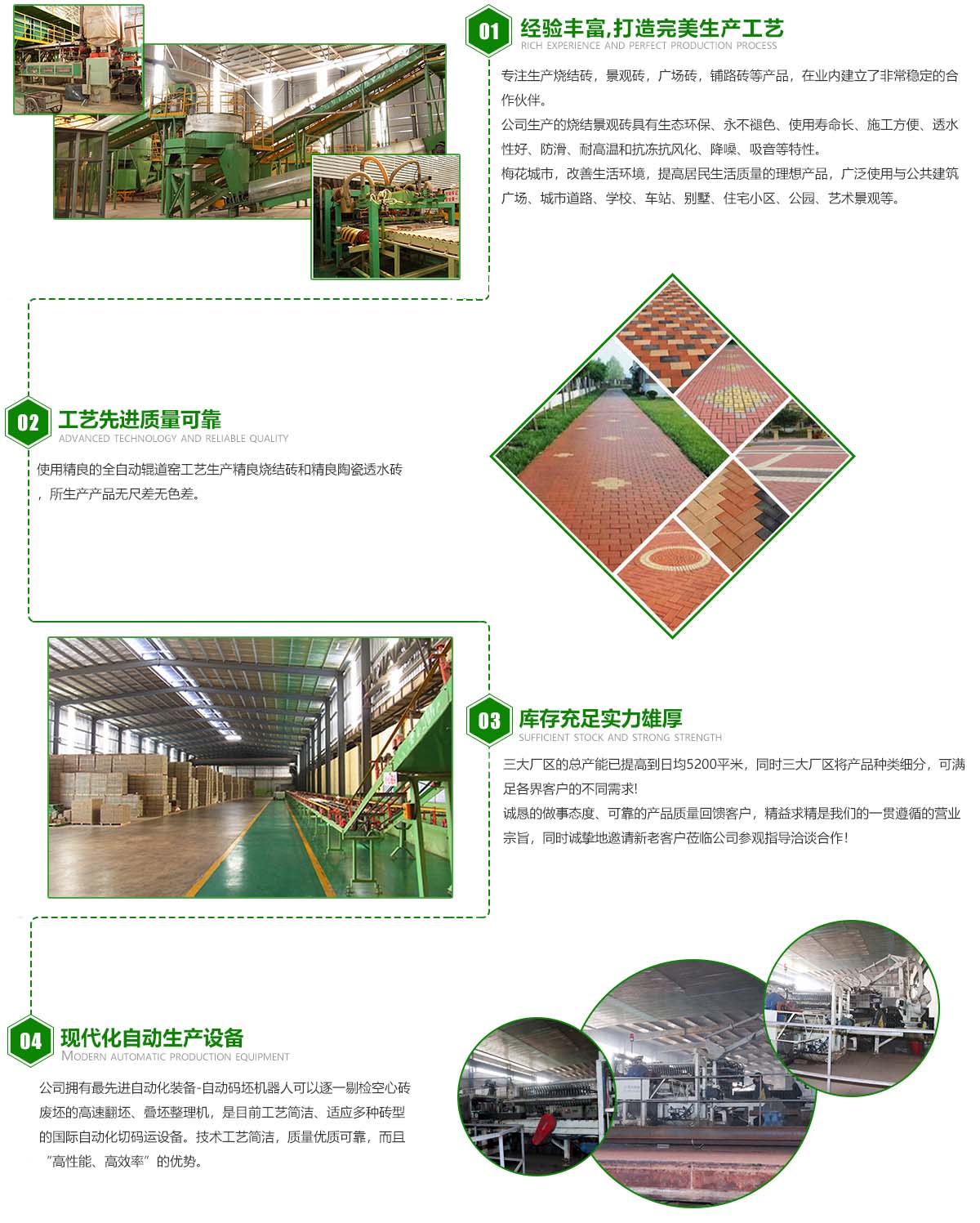 專注生產(chǎn)燒結(jié)磚,景觀磚,廣場磚,鋪路磚等產(chǎn)品,在業(yè)內(nèi)建立了非常穩(wěn)定的合作伙伴。 公司生產(chǎn)的燒結(jié)景觀磚具有生態(tài)環(huán)保、輕易不褪色、使用壽命長、施工方便、透水性好、防滑、耐高溫和抗凍抗風(fēng)化、降噪、吸音等特性。 美化城市,改善生活環(huán)境,提高居民生活質(zhì)量的理想產(chǎn)品,廣泛使用與公共建筑廣場、城市道路、學(xué)校、車站、別墅、住宅小區(qū)、公園、藝術(shù)景觀等。